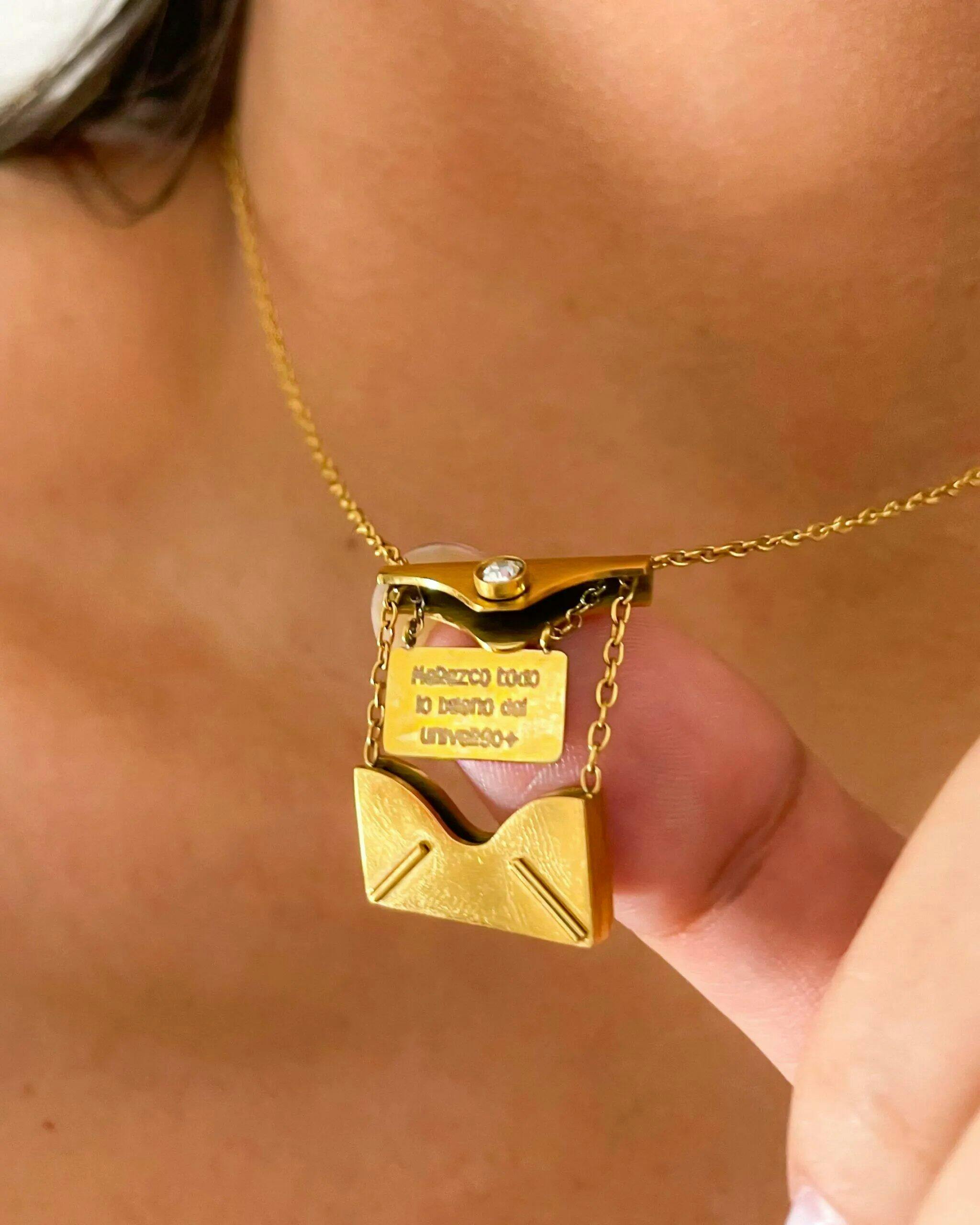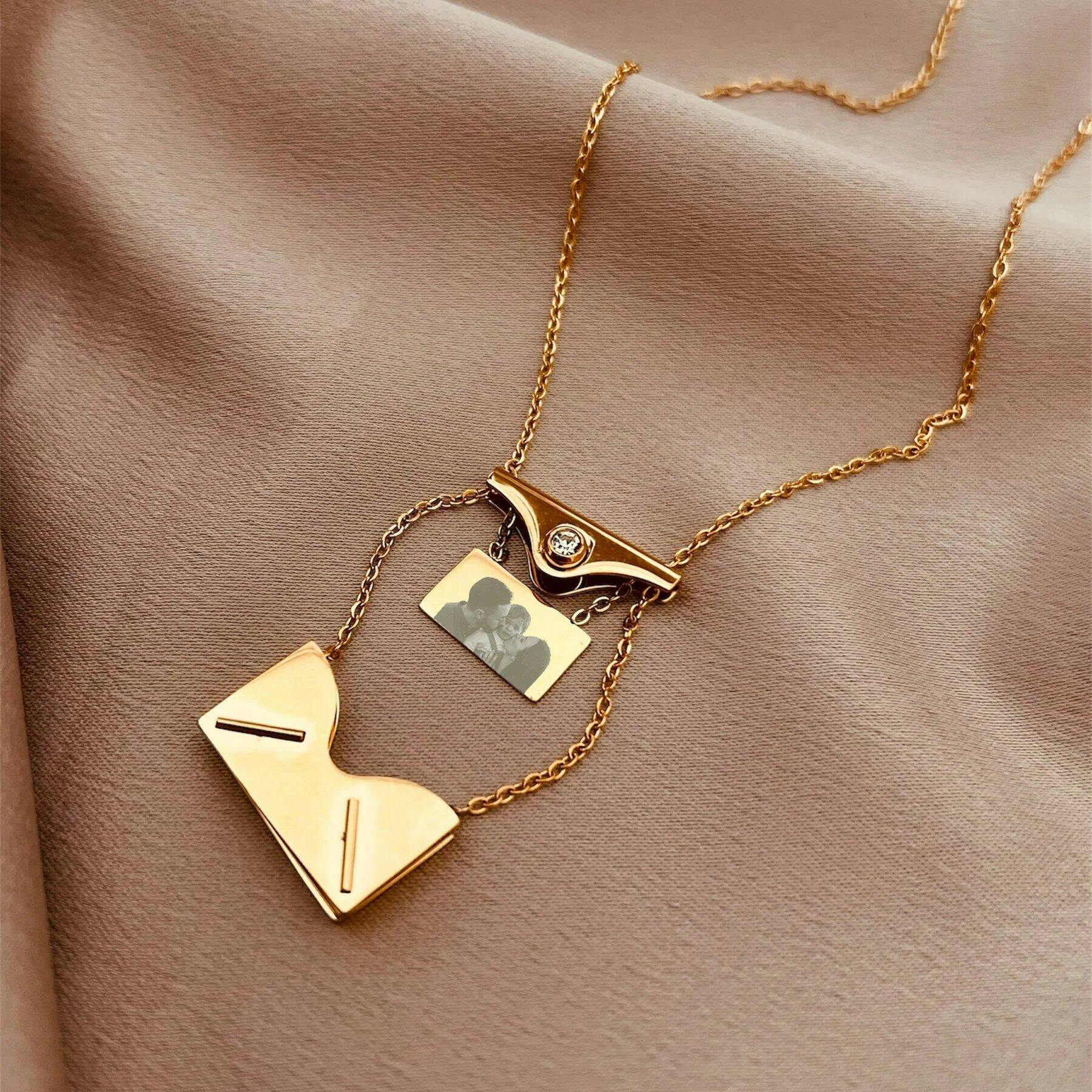 💌✨ Collar Carta Anabela en oro de 18K o plata 925. Personalízalo con grabado láser de foto o texto y convierte tus recuerdos en una joya única. Hipoalergénico, waterproof y resistente para acompañarte en todo momento. ¡El regalo perfecto para cualquier ocasión! 🎁💖
